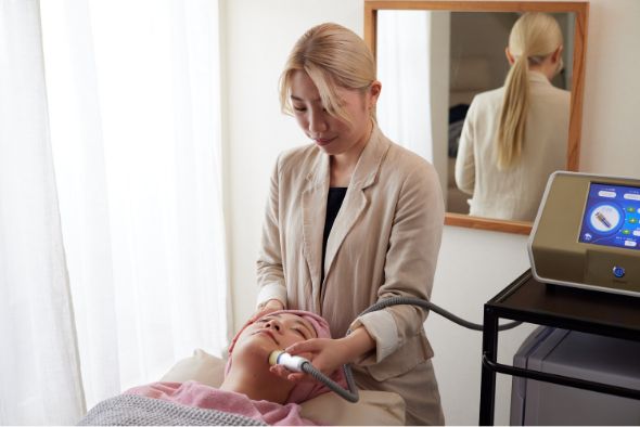 効果には個人差がありますが、初回の施術で肌のトーンが明るくなる方もいらっしゃいますし、毛穴の黒ずみや小じわなどに効果を実感いただく方もいらっしゃいます。ニキビの予防にもなります。
