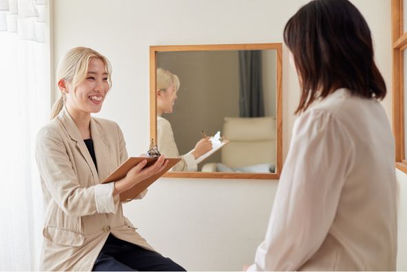 サービス内容や料金などを詳しくご説明し、ご納得いただいた上で次回のご予約をいただいています。